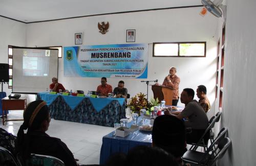 Bupati Kuningan H. Acep Purnama, SH., MH membuka Musrenbang di Aula Kec. Subang, Kamis, (30/01/2020). Hadir dalam Musrenbang Camat Subang Indra Bayu Permana, S. STP, Muspika Kec. Subang, Tim Monitoring Kabupaten, Kepala Desa se- Kec. Subang, Kepala UPT / UPTD se- Kec. Subang, dan undangan lainnya.